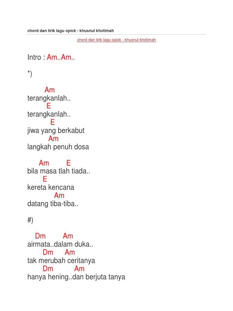 Chord Dan Lirik Lagu Opick Khusnul Khotimah Pdf